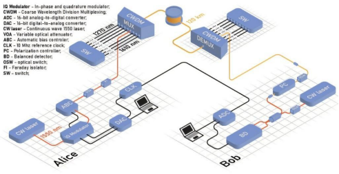 丹麦与捷克科学家携手,利用连续变量量子密钥分发(CV-QKD)技术,成功将量子信号与经典数据的共纤传输距离推至120公里。相关研究成果发表于新一期《物理评论快报》杂志。图片说明:量子-经典数据共纤传输示意图。图片来源:《物理评论快报》杂志量子密钥分发(QKD)技术凭借量子力学特性,可实现高度安全的保密信息传输。其原理在于:任何窃听行为都会扰动传输中信息的量子态,从而被通信双方察觉,确保通信链路安全