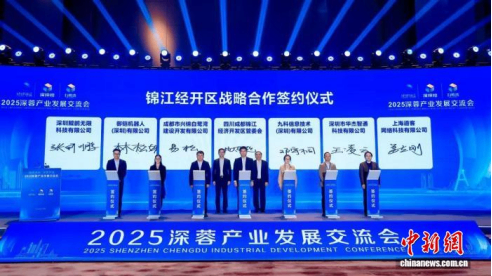 “深蓉互联 共赢未来”2025深蓉产业发展交流大会22日在深圳举行。现场达成多项合作签约。